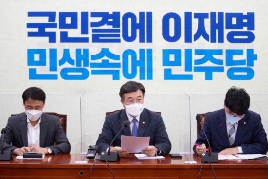 윤호중 더불어민주당 원내대표가 30일 서울 여의도 국회에서 열린 정책조정회의에서 발언하고 있다. /뉴시스 |
