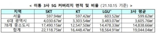 통신사 별로는 SK텔레콤 2만2118.75㎢, LG유플러스 1만8564.91㎢, KT 1만6448.47㎢ 순이었다. 과기정통부가 5G 커버리지 맵의 정확성을 점검한 결과, 과대표시율은 3사 모두 0%였다.