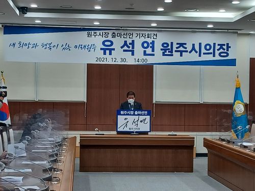 유 의장은 이날 시의회에서 기자회견을 하고 "코로나19로 힘들고 어려운 시기를 시민과 함께 극복하고 새로운 희망과 행복이 있는 미래의 원주를 만들어나가겠다"고 출마의 변을 밝혔다.
