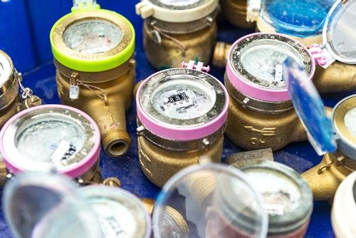 수도사업소에 보급될 교체용 수도계량기(동파 안전계량기)를 점검하는 모습 |