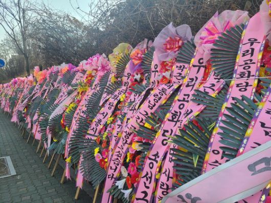 박 전 대통령의 사면을 일찌감치 기다리는 일부 지지자나 유튜버도 모여들었다. 화환 속 문구를 하나하나 휴대전화 카메라로 촬영하던 60대 A씨는 “역사의 현장이라 남기고 싶다”고 말했다. 우리공화당 측은 화환 1000개 이상이 병원 인근에 도착할 것으로 보고 있다.