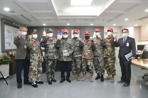 명예 해병 위촉식왼쪽에서 네 번째가 박상돈 천안시장 [천안시 제공. 재판매 및 DB 금지] (천안=연합뉴스) 박상돈 충남 천안시장이 30일 명예 해병으로 위촉됐다. 이날 천안시해병대전우회는 천안시청을 찾아 박 시장을 명예 해병으로 위촉했다. 박 시장은 수중 정화 활동을 위한 고무보트 등 지원을 해병대전우회에 약속했다. <저작권자(c) 연합뉴스, 무단 전재-재배포 금지>