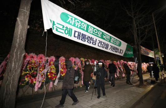 박근혜 입원한 병원 에워싼 지지자들