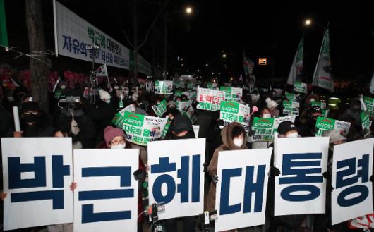 박근혜 전 대통령이 특별사면으로 석방된 31일 새벽 서울 강남구 일원동 삼성서울병원 앞에서 박 전 대통령 지지자들이 환호하고 있다. |