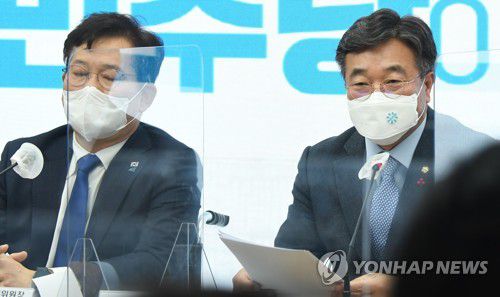 (서울=연합뉴스) 고동욱 정수연 기자 = 더불어민주당 윤호중 원내대표는 31일 현행 사회적 거리두기가 2주 연장된 것과 관련해 "추경을 포함한 보다 적극적인 대책을 정부가 세울 것을 요청한다"고 말했다.