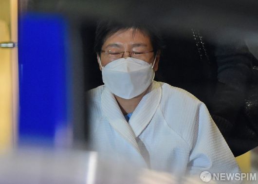 [서울=뉴스핌] 백인혁 기자 = 신종 코로나바이러스 감염증(코로나19) 확진자 밀접 접촉자로 분류된 뒤 병원에서 격리를 마치고 머물던 박근혜 전 대통령이 9일 오후 서울 서초구 서울성모병원에서 퇴원하고 있다. 2021.02.09 dlsgur9757@newspim.com |