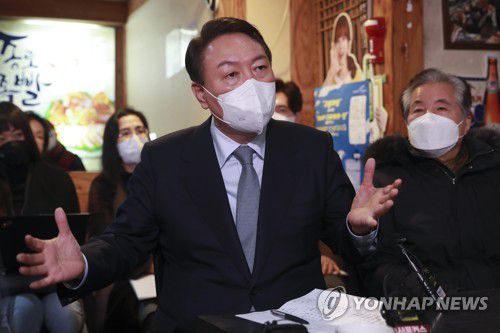 (서울=연합뉴스) 한지훈 류미나 기자 = 국민의힘 윤석열 대선 후보는 2일 코로나19 영업 제한으로 피해를 본 소상공인·자영업자에게 대출 금융 지원을 대폭 확대하겠다고 공약했다.