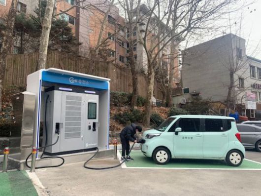 종로구가 전기차 사용 주민들의 편의 제공을 위해 지난달 평창동 내 급속충전소를 구축했다.