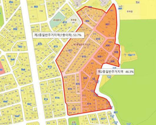 시흥동 810번지 일대는 단독주택 재건축 예정 지역(옛 시흥19구역)이 해제된 곳을 상당 부분 포함하고 있는 지역이다. 제1종일반주거지역과 제2종일반주거지역(7층 이하)으로 구성돼 있으며, 후보지 동측에는 도시자연공원구역 및 서울시 지정 문화재(순흥안씨 묘역)가 위치하고 있다.