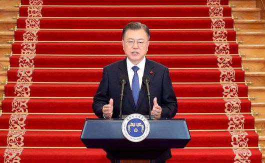 문 대통령은 이날 오전 청와대 본관에서 발표한 신년사에서 “올해는 남북 정부 간 최초의 공식 합의로서 평화통일을 지향하는 남북대화의 기본정신을 천명했던 ‘7·4 남북 공동선언’ 50주년을 맞는 뜻깊은 해”라며 이같이 말했다. 문 대통령은 ‘종전선언’이라는 단어를 직접 언급하지는 않았다. 넉 달 남은 임기 중 남북한과 미국·중국이 함께 참여하는 종전선언이 현실적으로 어렵다는 사실을 반영한 것으로 풀이된다.