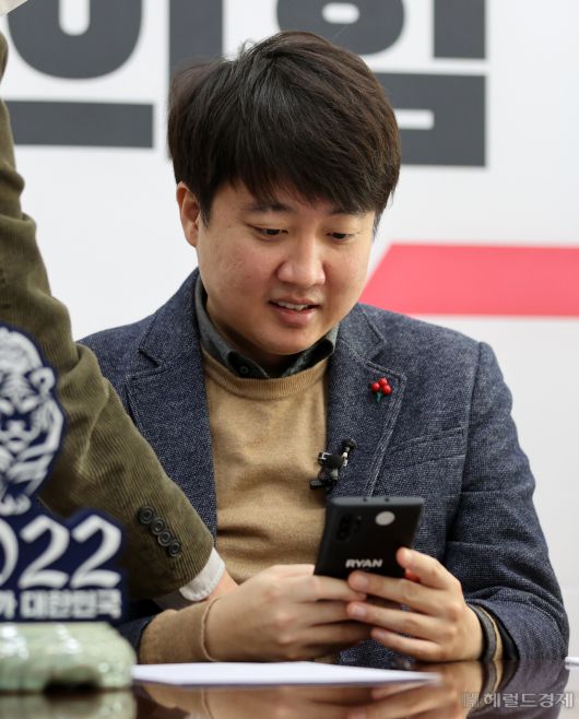 [헤럴드경제=이상섭 기자] 이준석 국민의힘 대표가 3일 오전 서울 여의도 국회에서 2022년 신년인사회를 준비하며 신지예 시대준비위원회 수석부위원장의 사퇴소식을 접하고 있다. |