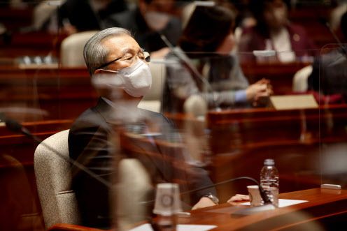 국민의힘 김종인 총괄선대위원장이 3일 오후 서울 여의도 국회에서 열린 의원총회에서 생각에 잠겨 있다.(사진=연합뉴스) |