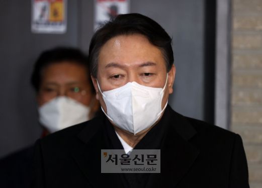 윤석열 국민의힘 대선후보가 3일 저녁 서울 여의도 당사에서 중앙선대위 전면 쇄신안 후속대책을 논의하고 당사를 나서고 있다. 2022.1.3 김명국 선임기자 |