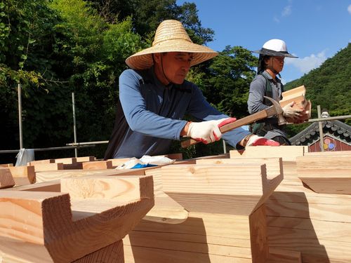 목조 건축물을 지을 때는 기와장이, 흙벽장이 등 다양한 기술자들 간에 협조가 원활하게 이루어져야 한다.
