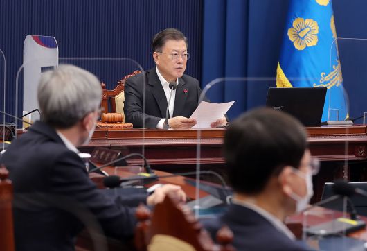 문재인 대통령이 4일 청와대 여민관에서 열린 영상국무회의에서 발언을 하고 있다./연합뉴스 |