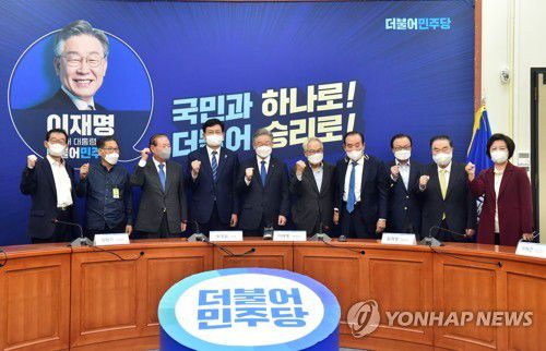 (서울=연합뉴스) 고상민 기자 = 이재명 대선 후보가 국민의힘 윤석열 후보를 오차범위를 넘어서는 격차로 우위를 보인다는 여론조사 결과가 최근 잇따르고 있지만 더불어민주당은 '자만 경계령'을 발령하며 내부 단속에 나서고 있다.