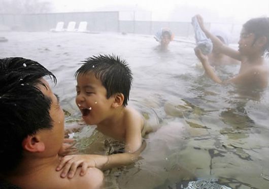 일본 센다이시 이즈미구의 한 온천시설에서 가족들이 목욕하고 있다. 연합뉴스 |