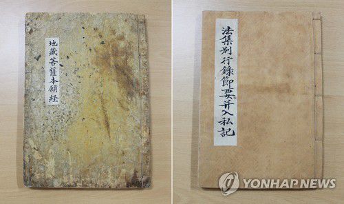 (제주=연합뉴스) 고성식 기자 = 제주도 세계유산본부는 5일 역사성과 학술 가치가 인정된 반야사 소장 전적류 '지장보살본원경'과 '법집별행록절요병입사기'를 제주도 유형문화재로 지정 고시했다.