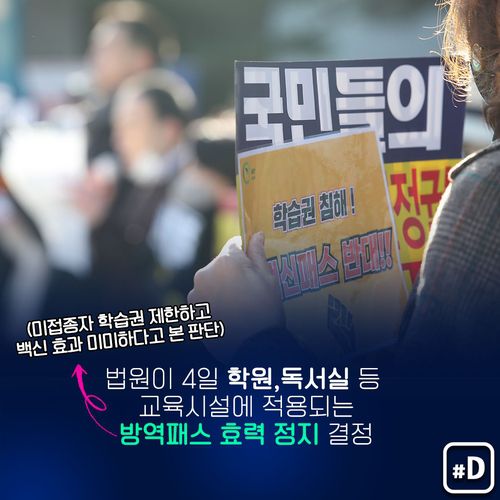 그러나 법원의 이번 결정으로 학원과 독서실, 스터디카페에 대한 방역패스제는 한 달을 채 넘기지 못하고 중단된 셈입니다.