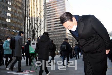 윤 후보는 인사 직후 기자들과 만나 “어제 선대본부 출범하는 걸 국민들께 말씀드리면서 출근길에 일찍 나와 시민들께 새해 인사드리는 게 맞지 않나 싶어 일찍 나왔다”고 말했다. 그는 ‘이준석 대표의 제안이 영향을 미쳤느냐’는 질문에는 웃으며 대답하지 않았다.