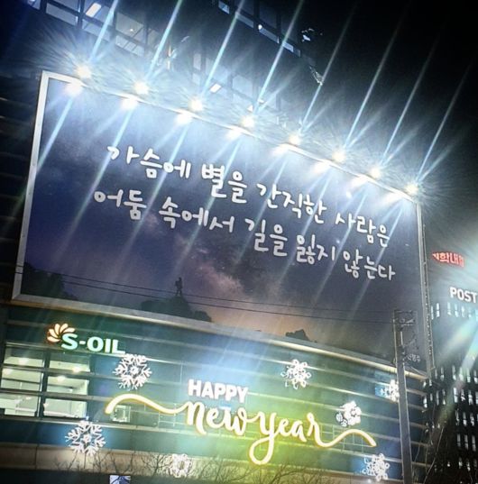 이지애는 6일 자신의 SNS에 "Hello 2022.."란 글과 함께 한 건물 외관을 담은 사진을 올렸다. 건물에는 ‘가슴에 별을 간직한 사람은 어둠 속에서 길을 잃지 않는다’란 글이 쓰여져 있는 간판이 달려있다. 이는 지난 해 11월 25일 올린 게시물 이후 처음으로 게재한 것이다.