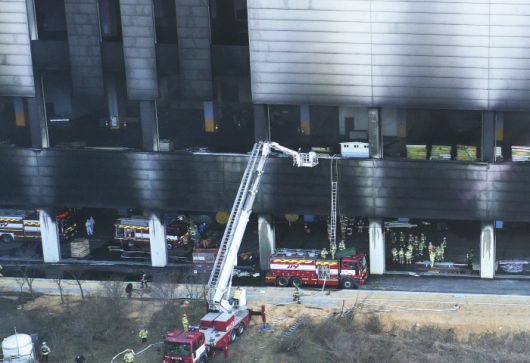 경기 평택시의 한 냉동창고 신축 공사현장에서 6일 불이 나 소방관들이 진화작업을 하고 있다. 연합뉴스 |
