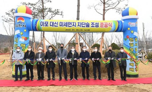 [헤럴드 대구경북=김성권 기자]경북 김천시는 아포읍 대신리 일원에 ‘ 미세먼지 차단 숲 조성을 마무리 하고 준공식을 가졌다고 6일 밝혔다.