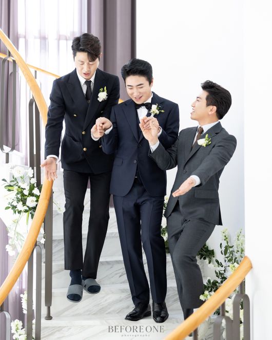 비포원스튜디오 측은 지난해 12월 19일 제주도에서 결혼식을 올린 개그맨 장동민과 쥬얼리숍 디자이너 A씨(36)가 촬영한 웨딩 화보와 결혼식 당일 사진을 공개했다.