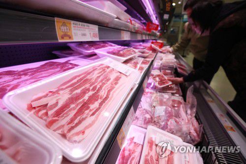 마트에 진열된 돼지고기 |