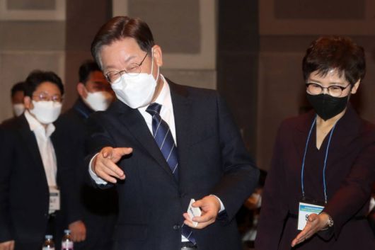 이재명 더불어민주당 대선 후보가 6일 서울 중구 프레스센터에서 한국행정학회 주최로 열린 대통령 선거 후보자 초청 토론회에 참석하고 있다. / 사진제공=뉴시스 |