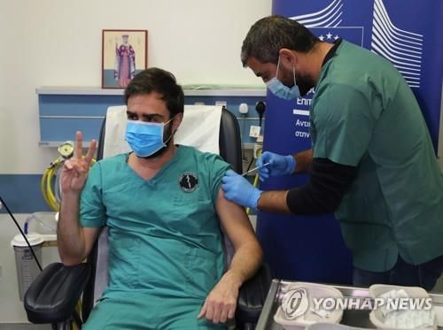 코로나19 백신 접종받는 키프로스 의료진 |