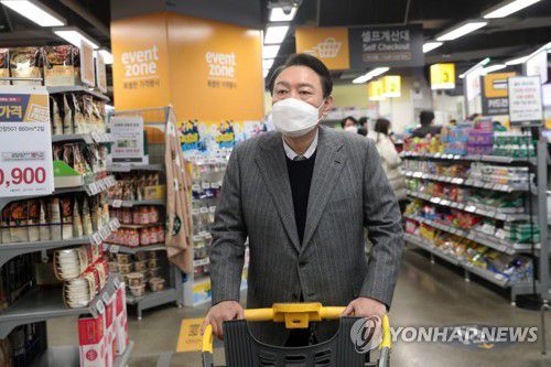 대형마트에서 물건 사는 윤석열 대선후보 |