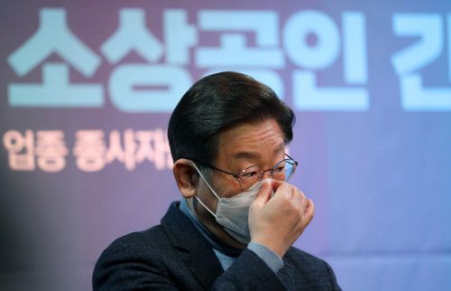 이 후보는 9일 서울 대학로 한 소극장에서 소상공인들과 간담회를 가진 뒤 기자들과 만나 “(지원) 사각지대를 최소화하려면 정부의 지원과 보상 규모를 대폭 늘리는 게 가장 좋은 방법”이라고 말했다. 이 후보는 “우리나라의 보상과 지원 규모가 다른 나라에 비해 매우 적다. 지금이라도 억울한 사람들이 없게 대폭적이고 선제적인, 적극적인 지원이 필요하다”고 강조했다.