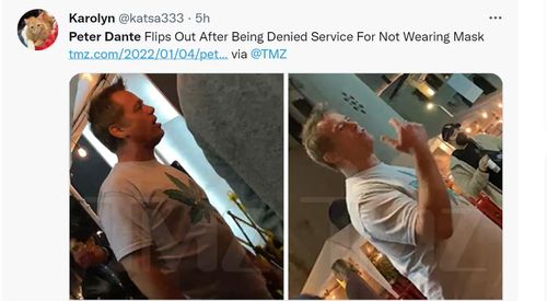 TMZ가 공개한 동영상에서 이 식당의 한 여성 종업원은 마스크를 쓰지 않은 단테에게 입장이 안 되고 주문을 받을 수 없다고 안내했다.