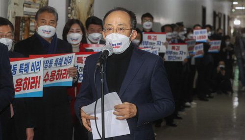 추 수석부대표는 이날 오후 국회 법제사법위원회 회의실 앞에서 열린 긴급 의원총회에서 “특검을 실시해 의혹을 해소한 후에 표를 달라고 하는 게 도리”라며 이같이 말했다.