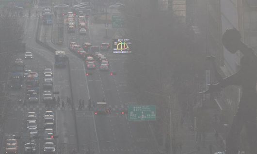 주말 동안 이어진 미세먼지 및 초미세먼지 고농도 상황이 계속된 10일 오전 서울 시내가 뿌옇다. 연합뉴스 |