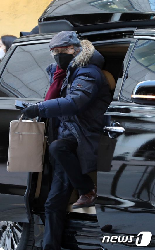 (서울=뉴스1) 황기선 기자 = 배우 오영수가 11일 오후 종로구 대학로 티오엠 극장 연습실로 발걸음을 옮기고 있다. 오영수는 지난 10일(한국시간) 제79회 골든글로브 시상식에서 넷플릭스 드라마 '오징어 게임'으로 TV부문 남우조연상을 수상했다. 2022.1.11/뉴스1
