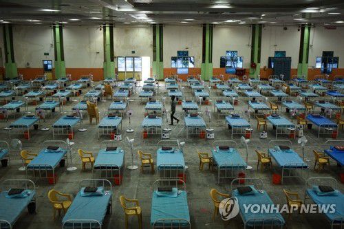 코로나19 병상 설치된 인도 첸나이 무역센터 |