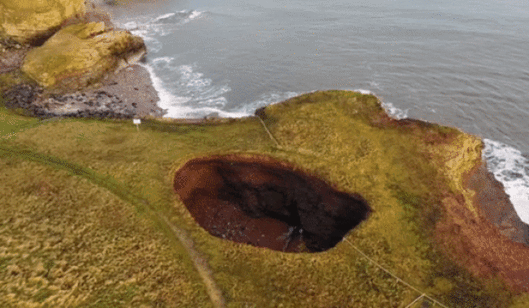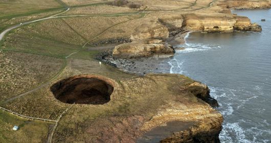 영국 에든버러에서 서쪽으로 35㎞ 떨어진 위트번시 해안가에는 좀처럼 보기 어려운 거대 싱크홀이 있다. 오래전 작은 구멍이었던 것이 이제는 그 너비가 12m에 이르는 커다란 웅덩이가 됐다.