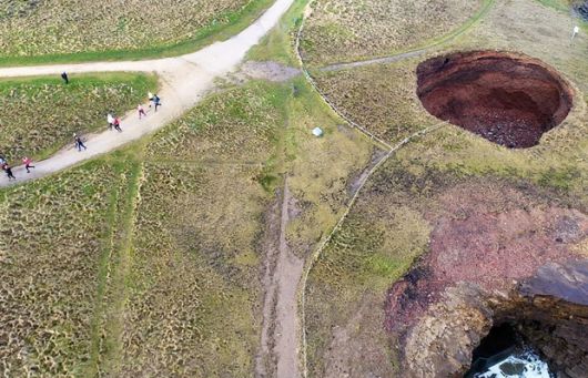 영국 에든버러에서 서쪽으로 35㎞ 떨어진 위트번시 해안가에는 좀처럼 보기 어려운 거대 싱크홀이 있다. 오래전 작은 구멍이었던 것이 이제는 그 너비가 12m에 이르는 커다란 웅덩이가 됐다. |