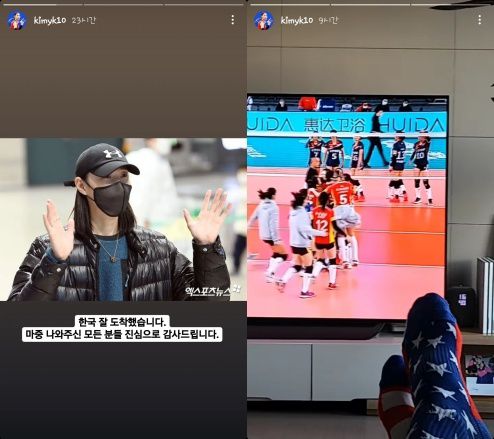 김연경은 11일 자신의 SNS를 통해 “한국 잘 도착했습니다. 마중 나와주신 모든 분들 진심으로 감사드립니다”라는 글을 남겼다.