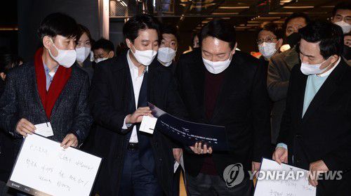 윤 후보와 이 대표는 경기장에 입장하기 전 마련된 'A4 용지'에 응원 팻말 문구를 적었다.
