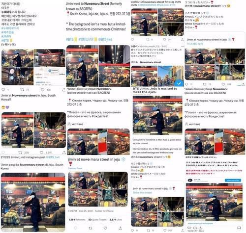 팬들 사이에는 이들 관광지 외에도 지민이 다녀간 카페와 음식점 등 실제 동선이 담긴 지도가 여러 가지 버전으로 만들어져 공유되고 있다.