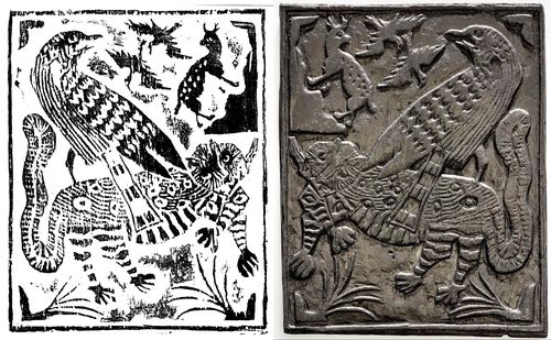 전시에 나오는 한국 판화 중에는 호랑이와 매가 함께 있는 작품이 있다. 힘이 강한 들짐승과 날짐승을 한 폭에 표현해 나쁜 기운을 억제하고자 했던 것으로 풀이된다.