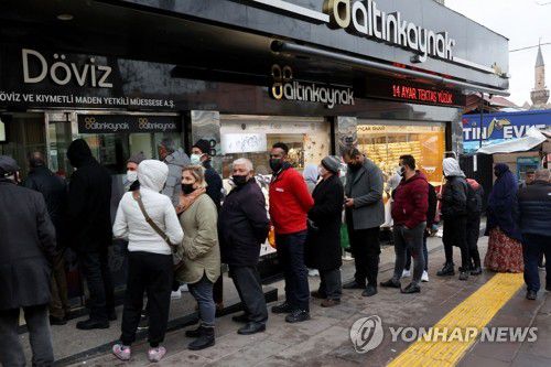 자국 화폐 가치 폭락 속 환전소 앞에 줄 선 터키인들 |