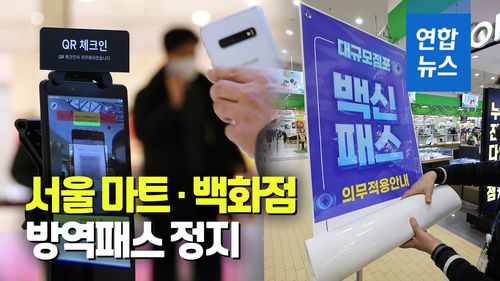 (서울=연합뉴스) 당분간 서울 내에서 성인은 상점·마트·백화점, 12∼18세 청소년은 모든 시설을 신종 코로나바이러스 감염증(코로나19) 방역패스(백신접종증명·음성확인제) 없이 이용할 수 있게 됐습니다.