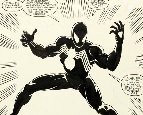 스파이더맨은 원래 빨간색과 파란색 복장을 하지만, 이 만화책에서 처음으로 검정 슈트를 입고 등장한다.