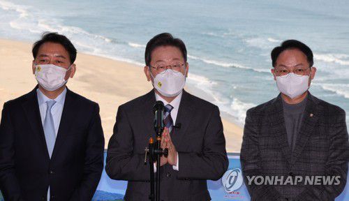 (서울·고성·속초=연합뉴스) 홍지인 홍준석 기자 = 더불어민주당 이재명 대선 후보는 16일 통일부 명칭에 대해 "남북협력부, 평화협력부 이런 방식으로 이름을 정해서 단기 목표에 충실한 것이 장기적인 통일을 이루는 현실적, 실효적인 길이겠다는 논의가 있다"고 말했다.