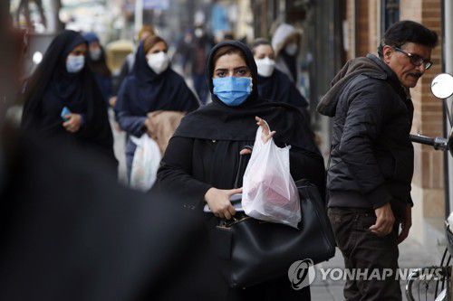 마스크 착용한 이란 시민 |