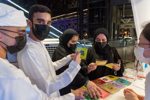 아랍에미리트 두바이에서 개최 중인 ‘2020 두바이 엑스포’ 한국관을 찾은 외국인들이 지난 14일(현지시간) 기념품을 살펴보고 있다. |